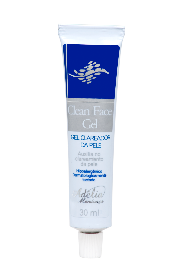 CLEAN FACE GEL é um produto que atua eficazmente, em virtude de propriedades auxiliares no clareamento da pele e antioxidantes, que apresentam seus componentes tais como o Ácido glicólico e o Hidróxido de Amônia. CLEAN FACE GEL é indicado como tratamento cosmético para auxiliar o clareamento da pele. Dermatologicamente testado.