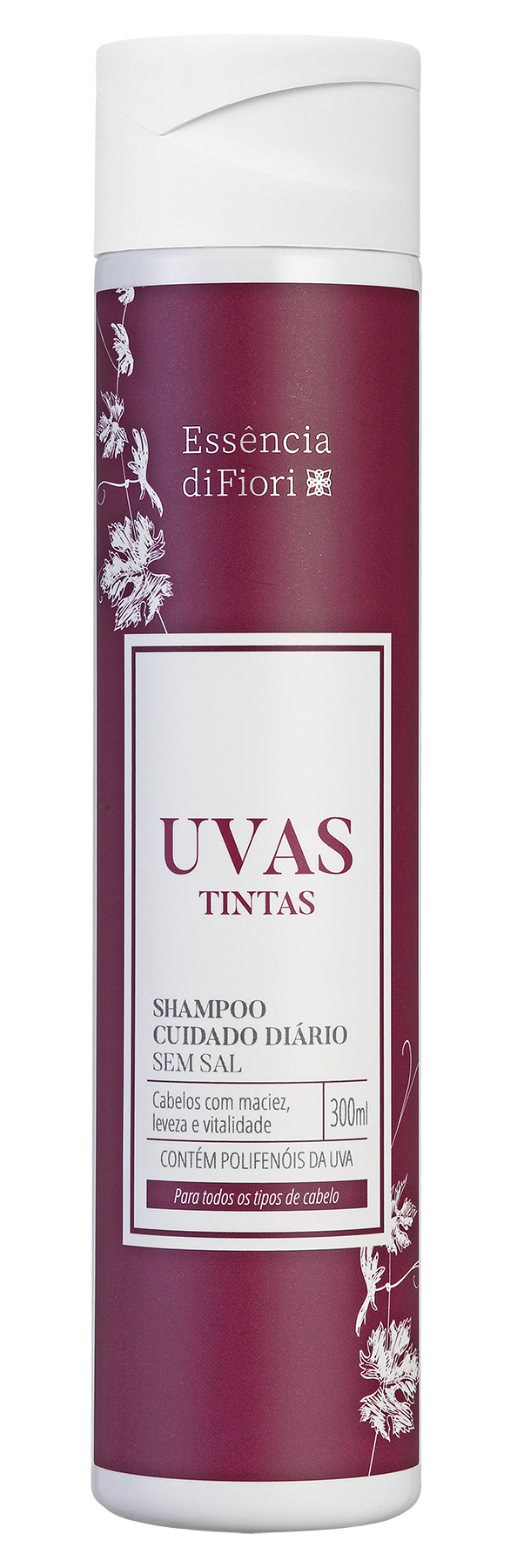 O Shampoo Uvas Tintas possui uma balanceada composição de ativos, tornando-o especialmente indicado para lavagens frequentes de todos os tipos de cabelo. Sua fórmula não contém adição de cloreto de sódio e combina extrato de uva com D-pantenol, que agem melhorando a estrutura dos fios e deixam o cabelo com mais brilho e vitalidade.