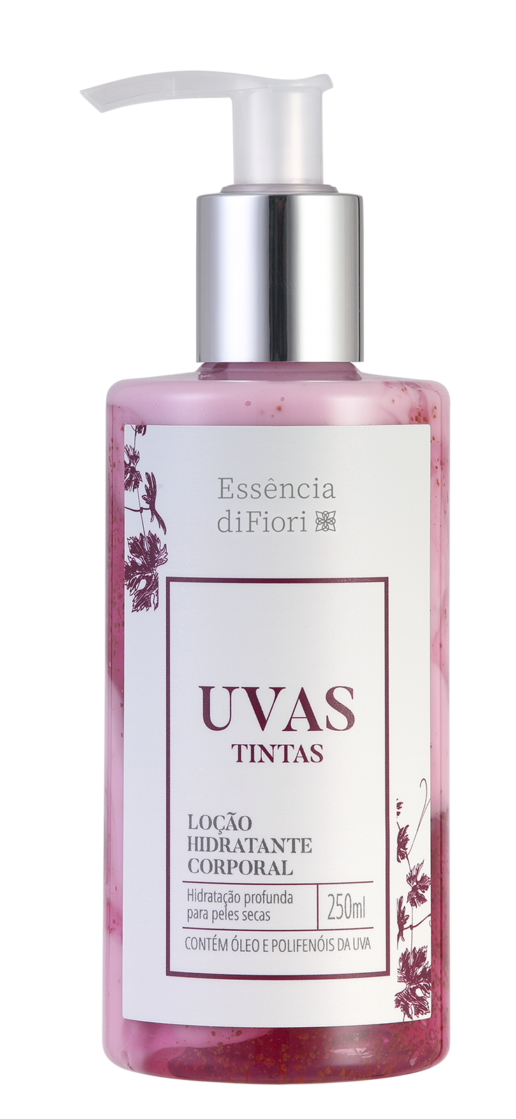 A Loção Hidratante Corporal Uvas Tintas é elaborada com ácido hialurônico, polifenóis da uva e óleo de semente de uva encapsulado em esferas, cuja liberação acontece somente no momento da sua aplicação na pele, quando as esferas são rompidas.Hidrata intensivamente e age prevenindo a degradação de colágeno, o que ajuda a conservar a juventude da pele.