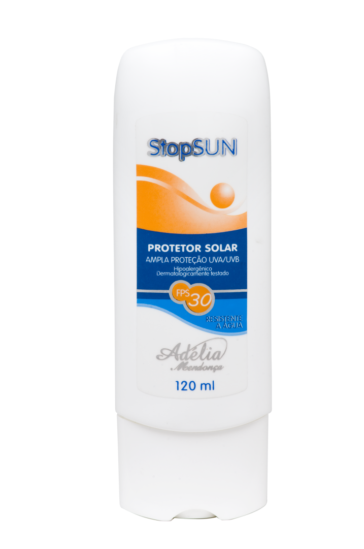 STOP SUN possui ampla proteção UVA e UVB que protege contra os efeitos nocivos do sol, além de seus ativos, Vitamina E (acetato de tocoferol), Extrato de Aloe vera, D-Pantenol, PCA sódico, Hialuronato de sódio, que hidratam, protegem e auxiliam na prevenção do envelhecimento precoce, reduzindo a formação de radicais livres, proporcionando saúde e beleza à sua pele. STOP SUN protege sua pele até 30 vezes mais do que sem a sua aplicação. Resistente a água e ao suor. Evitar exposição prolongada ao sol, principalmente no período entre 10-16h. Dermatologicamente testado.
