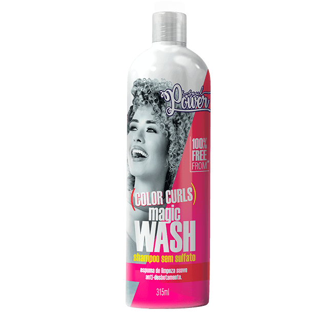 Sem sulfato, formulação anti-desbotamento MAGIC WASH que limpa delicadamente sem agredir os pigmentos das colorações, fortalece os fios entre as aplicações das colorações, além de auxiliar na formação natural dos cachos.