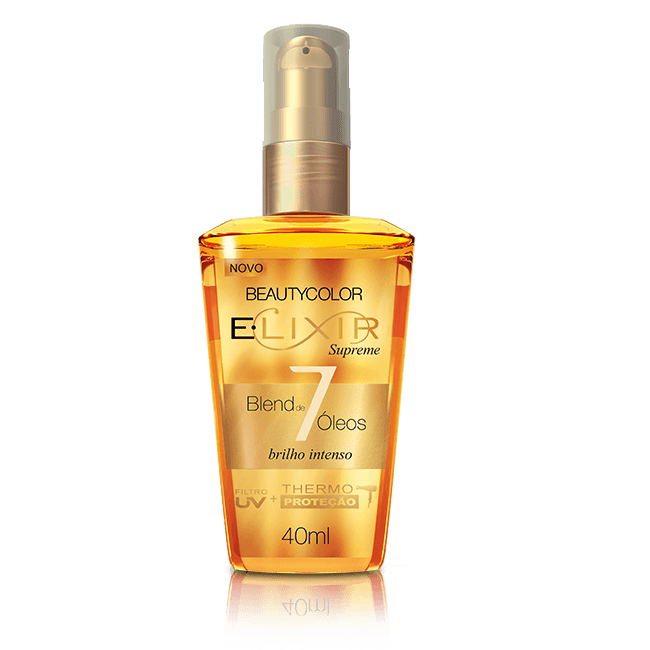 O Elixir Blend de 7 Óleos é uma combinação de 7 óleos (Argan, Elaeis, Monoi, Macadâmia, Oliva, Cálamo e Mirra) essa junção de óleos proporciona resultado incríveis no brilho e luminosidade do cabelo.