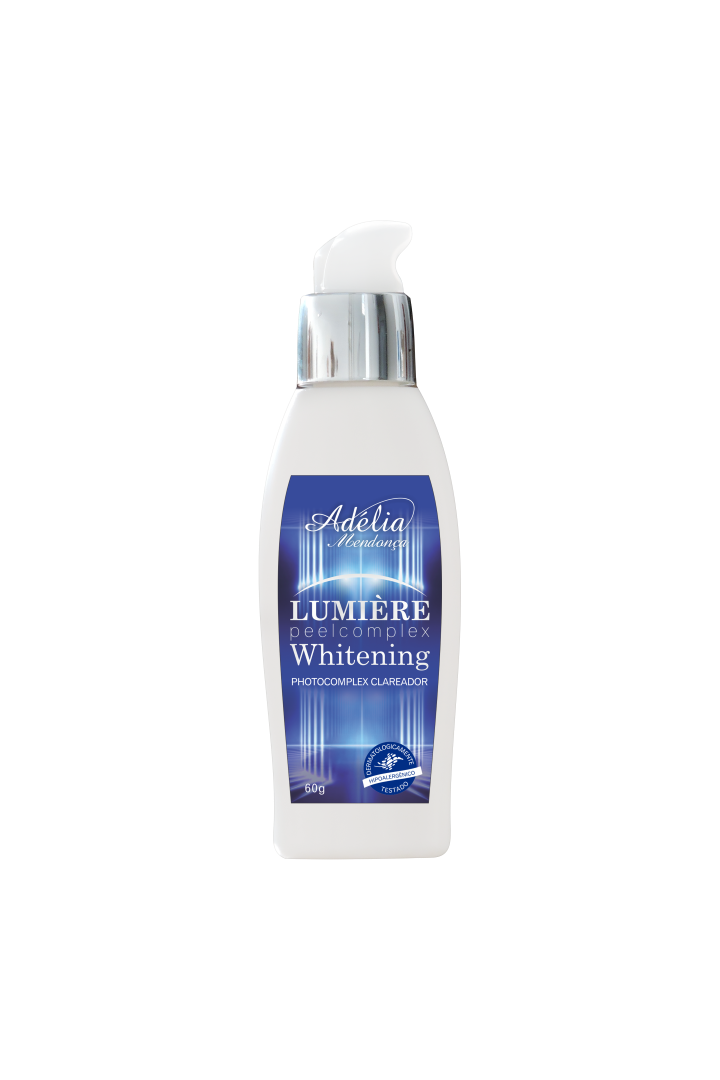 LUMIÈRE PEEL WHITENING é um sérum formulado para uso associativo em terapias fotodinâmicas com leds e laser de baixa potência. Sua composição alia ácido octadecenedióico a clareadores funcionais obtidos da flor de Margarida. O resultado é uma atuação foto-inteligente, não sensibilizante, com ação direcionada sobre os focos melânicos, centrando suas atividades na cadeia melanogênica e na uniformização da tonalidade da pele, com redução intracelular dos níveis da enzima tirosinase. Ainda, associa Gluconolactona; Nano Vitamina A; Coenzima Q10 e Ácido Hialurônico a inovadores ativos fotodinâmicos, que são fotoestimulados potencializando sua composição ativa. Possui atuação otimizada nos comprimentos de onda 500nm a 600nm (led âmbar e verde), atuando em tratamentos estéticos clareadores. Uso profissional. Dermatologicamente testado. Este produto não apresenta parabenos em sua composição e foi formulado de maneira a minimizar possível surgimento de alergia.