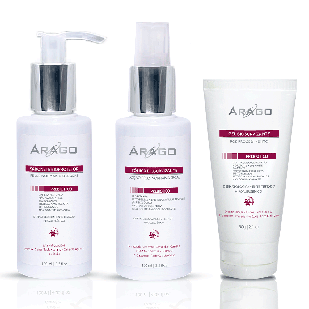 Dentro desse kit encontra-se o Gel Biosuavizante, que diminui reações sensíveis e reativas da pele, podendo ser usado todos os dias; o nosso sabonete prebiótico, que evita e diminui reações diárias na pele que provocam envelhecimento, descamação, vermelhidão e pele desequilibrada e uma loção tônica biosuavizante, que além de proporcionar conforto e maciez, regulariza o pH e possui ação prebiótica para todos os tipos de pele, em especial nas peles sensíveis, reativas, gestantes e no pós procedimento de limpeza de pele.