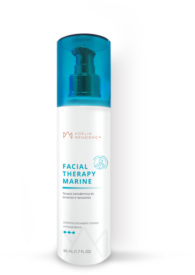 FACIAL THERAPY MARINE é um sérum formulado em base de água marinha de Iroise e altos teores de magnésio para uma terapia transdérmica mineral. Com extratos complexos de algas marinhas, possui uma rede de biopolímeros polieletrolíticos obtidos a partir de algas vermelhas e pardas, ácidos poliurônicos, polímeros de fucoidan e poligalactosídeos sulfatados. Apresenta notáveis propriedades imunoestimulantes e comprovado efeito de regeneração celular