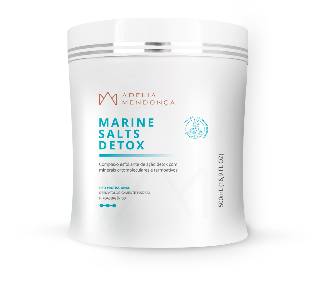 MARINE SALTS DETOX é formulado em base anidra, rica em silicones emolientes que nutrem a pele de forma tridimensional, permitindo um sensorial aveludado, recuperando seu colágeno ativamente com efeito remineralizante e mecanismo de termorregulação especial e dinâmico. Ao ser profundamente hidratada, o epitélio corporal entra em contato imediato com 5 tipos de sais especiais, para uma esfoliação física regenerativa e altamente antioxidante/drenante. Este produto fornece um preparo específico para o refinamento da estrutura corporal, aumentando a eficácia de qualquer tratamento corporal sequencial à sua aplicação. Fórmula livre de água para uma emoliência graxa profunda e integração detoxificante de sais especiais, para um efeito quelante supremo, ativando o sistema linfático e estimulando a microcirculação, acelerando o metabolismo da queima de gorduras. Seu uso pode ser associado a manta térmica. Produto biossustentável (livre de polietileno).