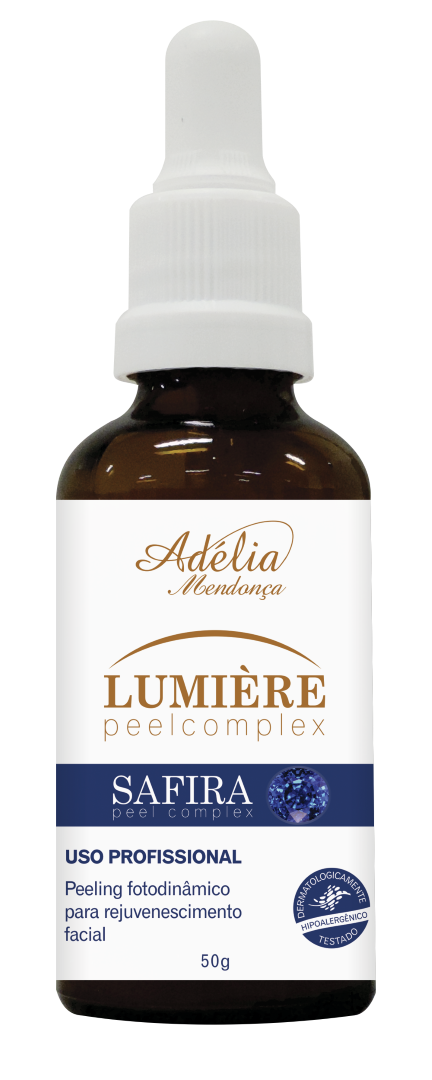 Safira Photopeel Complex é um sérum formulado para uso associativo em terapias fotodinâmicas com leds e laser de baixa potência. Sua composição alia alfa-hidroxi e alfa-ceto ácidos; complexos minerais orgânicos; safira micronizada; prata metálica pura; esfoliantes enzimáticos e inovadores ativos fotodinâmicos, que convertem os raios solares do espectro ultravioleta em energia que estimula o rejuvenescimento da pele. Possui atuação otimizada nos comprimentos de onda 470nm e 650nm (led azul e vermelho), potencializando tratamentos estéticos rejuvenescedores. Uso profissional. Dermatologicamente testado. Este produto não apresenta parabenos em sua composição e foi formulado de maneira a minimizar possível surgimento de alergia.