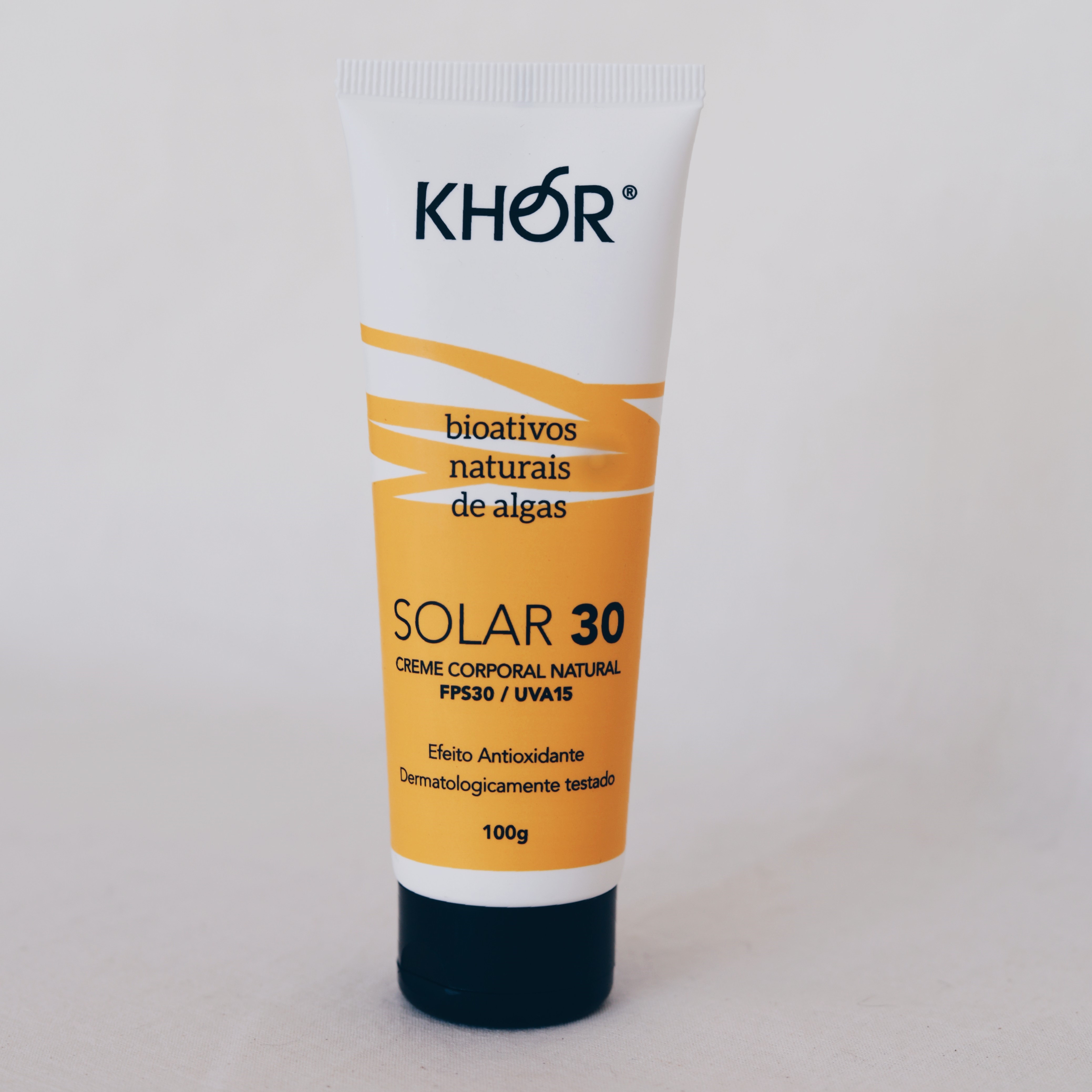 O Protetor Solar Natural FPS 30 KHOR é um protetor solar de uso diário com altaproteção UVB (30) e UVA (15). O filtro solar FPS 30 oferece à pele uma alta proteção contra os efeitos nocivos da radiação solar sendo indicado para peles muito sensíveis a queimaduras solares. É um produto inovador que contém uma combinação exclusiva de filtros físicos com partículas micronizadas que mantêm a performance do protetor solar sem causar toxicidade para o corpo nem para o ambiente, protegendo os corais. Oferece proteção de até 30 vezes mais do que não aplicando nada. Além de conferir fotoproteção, o Protetor Solar Natural FPS 30 KHOR foi desenvolvido com bioativos de origem natural à base de algas marinhas, aloe vera, calêndula e camomila que têm um poderoso efeito antioxidante e antienvelhecimento auxiliando na prevenção de rugas e no envelhecimento precoce da pele ocasionado pelas radiações solares. Mantém a pele hidratada, evitando o ressecamento excessivo após a exposição solar, ajuda a prevenir queimaduras solares sem o acumulo de resíduos na pele, sendo necessária a reaplicação do produto para manter a sua efetividade.