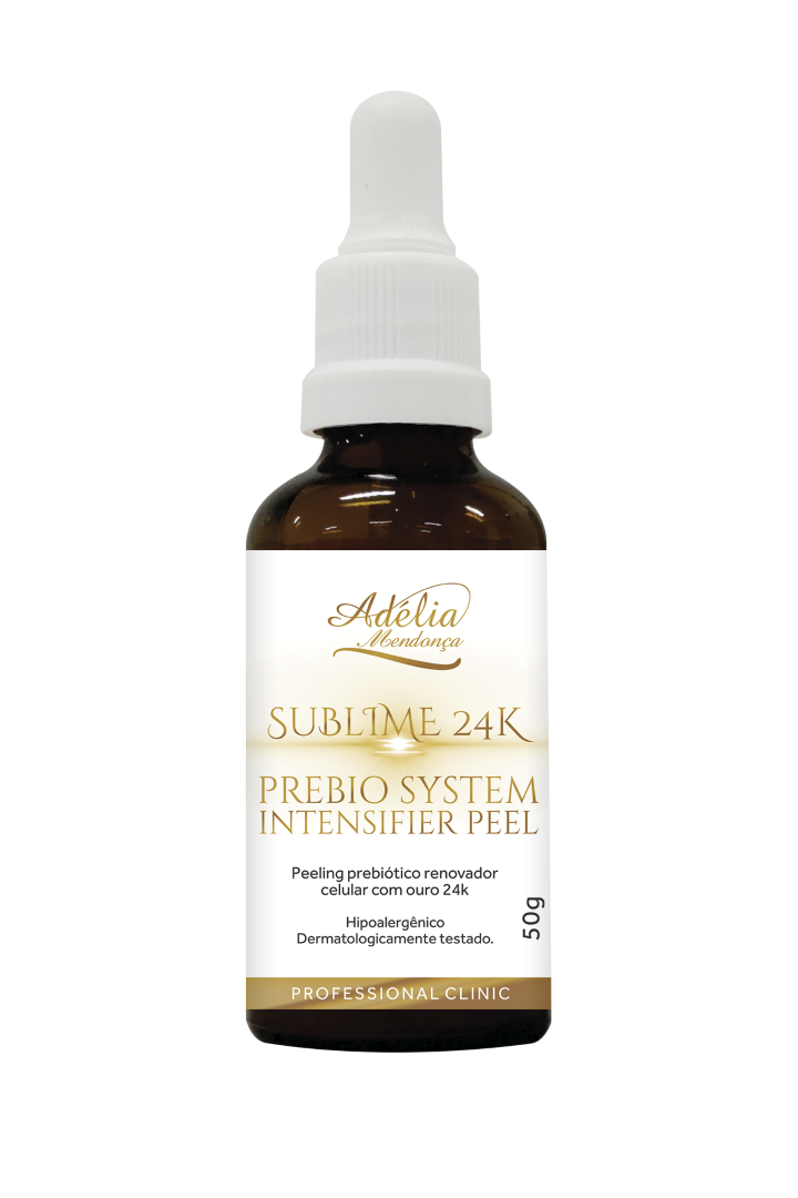 PREBIO SYSTEM INTENSIFIER PEEL é um peelingortomolecular D-likeem sérum de atuação química, enzimática e de fortificação dérmica baseada nos preceitos prebióticos, minerais e hormonais (vitamina D-like e melatonina repair). Agrega benefícios de esfoliação química promovida pelos ácidos especiais encapsulados: ácido glicólico, dicloroacético e pirúvico; à esfoliação enzimática pelas propriedades da Papaína. Estes ativos atuam em simbiose química associados ao ouro 24k, minerais quelatosortomoleculares e ativos prebióticos. Sua composição inédita estimula a renovação cutânea para o rejuvenescimento da pele e promove a uniformidade do relevo facial, removendo as células mortas, fortalecendo o microbioma epitelial e seu ecossistema basal – preservando as bactérias de efeito benéfico à manutenção da cutis; garantindo um efeito iluminador imediato, progressivo e um efeito lifting intenso. Desenvolvido com tecnologia altamente especializada dentro dos conceitos mais modernos da dermocosmética, PREBIO SYSTEM INTENSIFIER PEEL apresenta uma combinação exclusiva de tecnologia antiagingrepair reunindo atuações prebióticas, ortomoleculares, minerais (ouro 24K) e bio hormônios sintéticos para a agregação D-like e incorporação epitelial de melatonina. Auxiliam na manutenção da pele com aspecto saudável, firme e resistente.Produto formulado para uso associativo em terapias fotodinâmicas com ledse laser de baixa potência. Possui atuação otimizada nos comprimentos de onda 470nm a 650nm (leds azul, âmbar e vermelho), potencializando tratamentos estéticos rejuvenescedores. Este produto compõe a linha Sublime 24k, produzido com ouro 24K puro (microfolhas de ouro maciço com espessura média de 2,5 mm e com certificado de autenticidade). Extraídos de jazidas na Alemanha, através da Gold Cosmetics: Company AGOSI em Pforzheim.Uso profissional. Dermatologicamente testado. Este produto não apresenta parabenos em sua composição e foi formulado de maneira a minimizar possível surgimento de alergia.