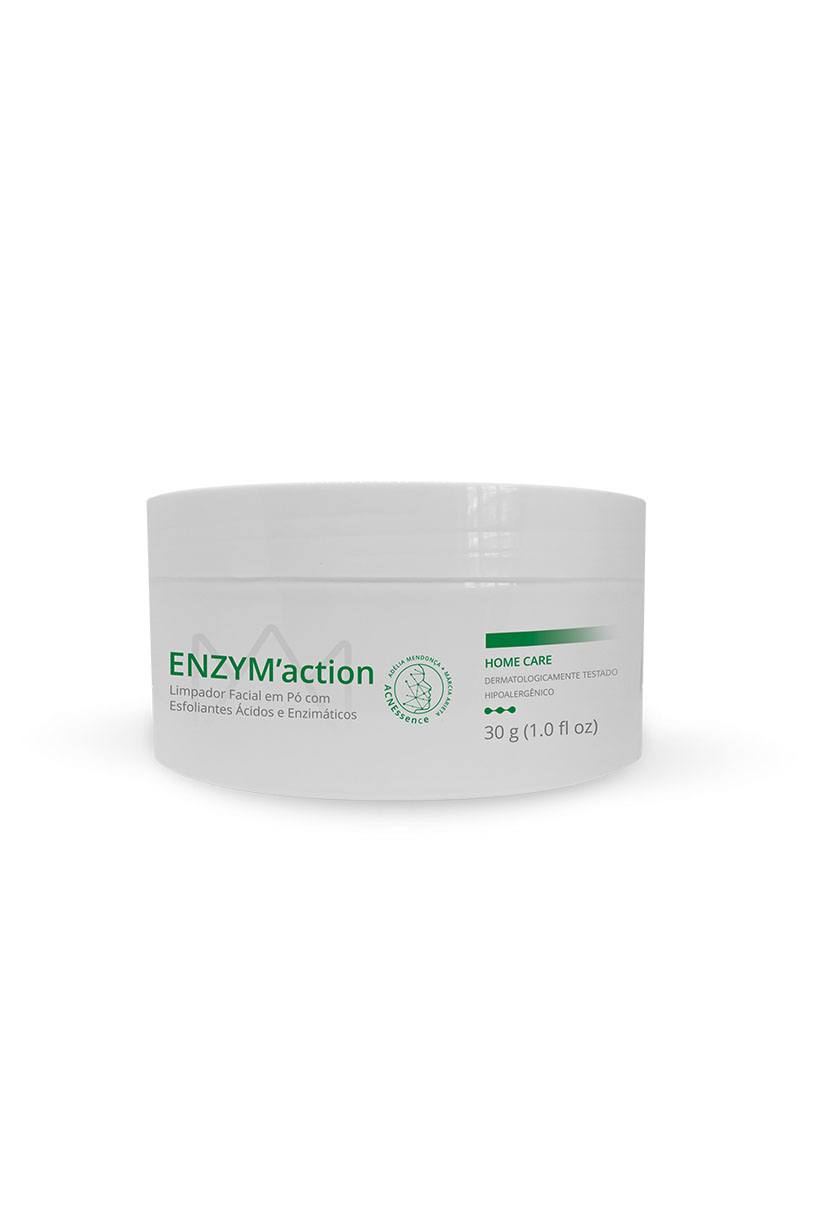 Modo de usar: Uso Externo. Aplicar sobre a pele seca. Coloque uma pequena quantidade (0.24g) de ENZYM´action Home Care na palma da mão e adicione algumas gotas de água. Misture até formar uma pasta. Aplique este conteúdo no rosto massageando suavemente. Deixe agir por 3 minutos. Seu uso pode ser estendido para pescoço e colo. Promova massagem suave e delicada para haver saponificação eficiente. Pode ser associado com acessórios de pulsação elétrica/ultrassônica de higienização. Enxaguar abundantemente com água. Frequência de uso: pode ser usado 2x ao dia, conforme a necessidade da pele ou protocolo domiciliar prescrito.