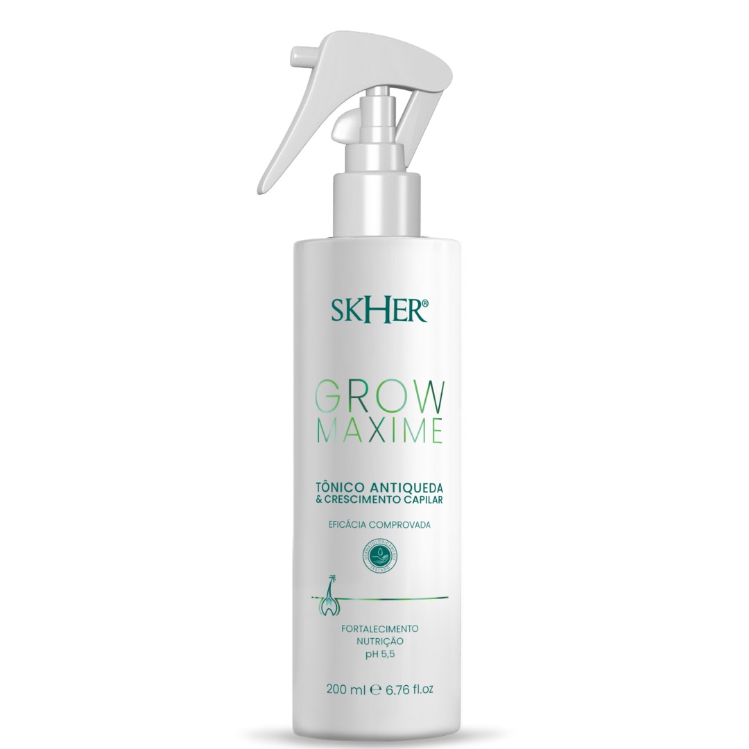 Modo de usar: após lavar com o Shampoo GROW MAXIME, aplique o tânico no couro cabeludo limpo e massageie suavemente com as pontas dos dedos para espalhar uniformemente o produto. Não enxágue.